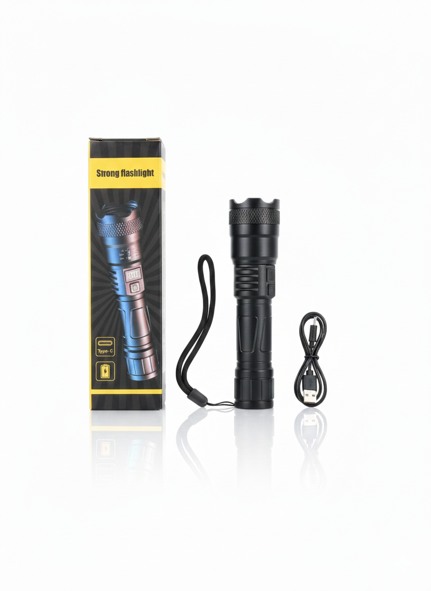 ناموجودچراغقوه پلیسی شارژی مدل Strong Flashlight با نمایشگر شارژ و پورت Type-C