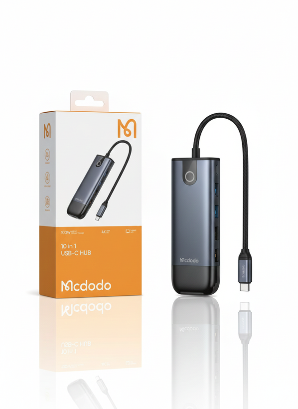 هاب Mcdodo HU-742 تمام محدودیتهای پورت لپتاپ یا تبلت شما را از بین میبرد. این محصول با بدنه آلومینیومی باکیفیت، گرمای تولید شده را به خوبی دفع میکند. پورت شبکه آن برای گیمرها و کسانی که نیاز به اینترنت بدون نوسان دارند عالی است و خروجی HDMI آن تصویری شفاف و بدون لگ را روی مانیتورهای بزرگ نمایش میدهد.