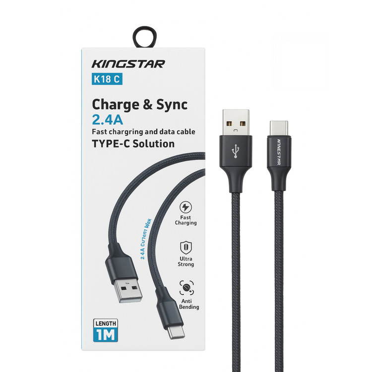 کابل KINGSTAR K18C شارژ سریع و انتقال داده پایدار را ارائه میدهد و برای استفاده روزمره و حرفهای مناسب است.