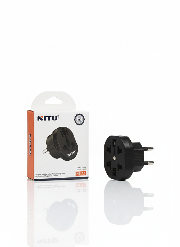 تبدیل برق نیتو مدل NT-A3 برای حل مشکل عدم سازگاری دوشاخههای خارجی با پریزهای ایران طراحی شده است. این محصول با تحمل جریان تا ۱۶ آمپر، برای دستگاههای پرمصرف مانند سشوار یا اتو نیز قابل استفاده است. بر خلاف مدلهای ارزانقیمت، دوشاخهها در داخل این تبدیل کاملاً محکم فیکس میشوند و دچار لقی یا ایجاد جرقه نمیشوند.