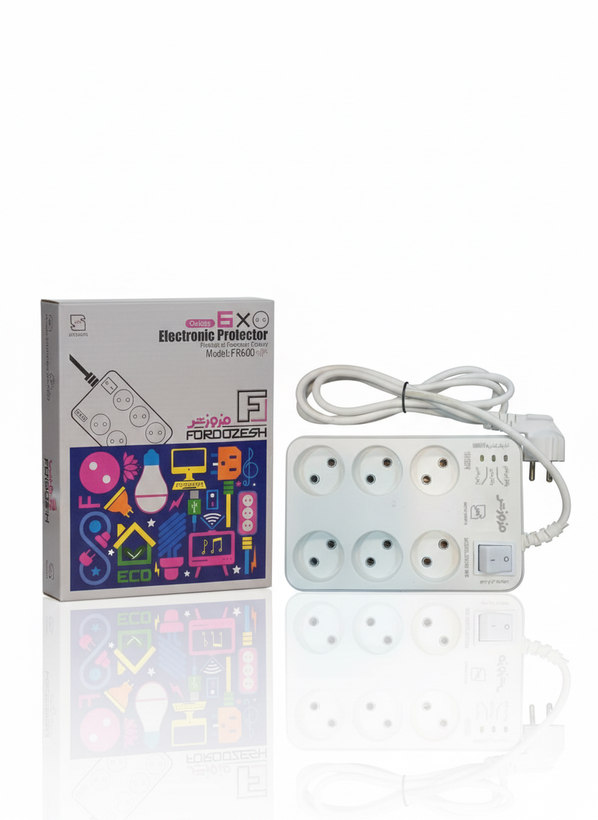 مدل FR600 از برند فروزش با داشتن ۶ خروجی، نیاز شما را برای اتصال همزمان چندین دستگاه مانند تلویزیون، گیرنده، سینمای خانگی و کنسول بازی برطرف میکند. این محافظ دارای مدار هوشمند قطعکننده است که در صورت عبور ولتاژ از حد مجاز، سریعاً واکنش نشان میدهد. فواصل پریزها به گونهای طراحی شده که آداپتورهای بزرگ هم در کنار هم قرار بگیرند.
