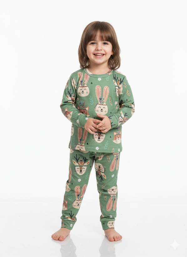 بلوز و شلوار بچگانه طرح خرگوش و گوزن سبز
