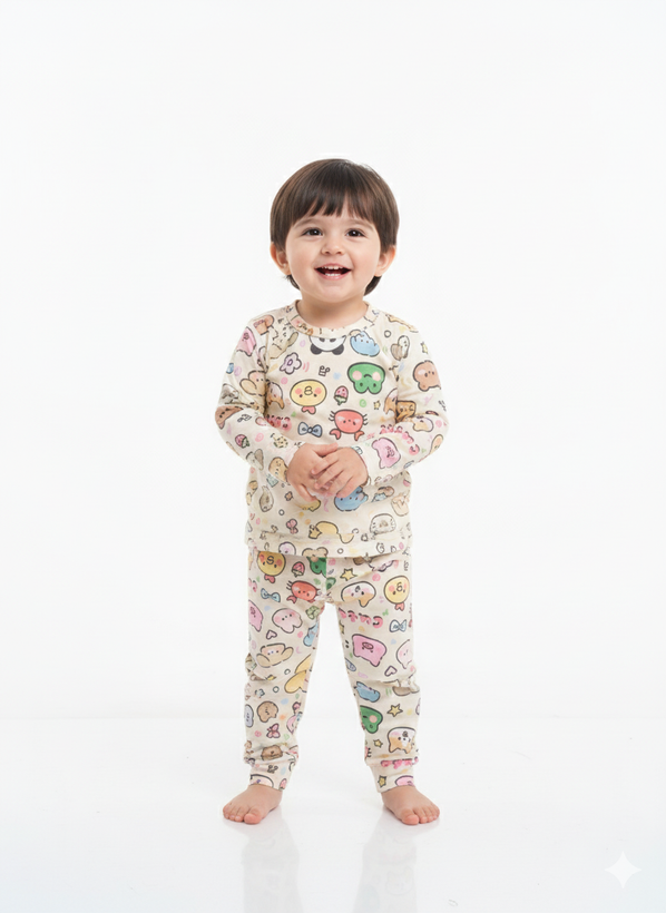 بلوز و شلوار بچگانه طرح حیوانات عروسکی(زمینه کرم )