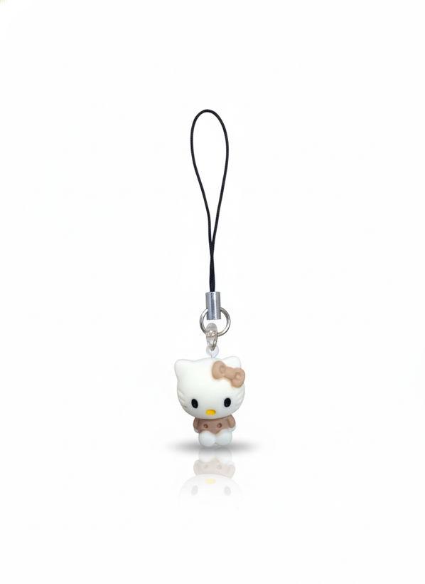 آویز موبایل فانتزی طرح شخصیت هلو کیتی سفید با لباس قهوه ای (Hello Kitty)