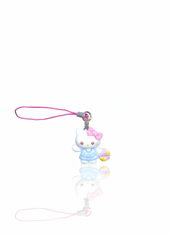 آویز موبایل فانتزی طرح شخصیت هلو کیتی آبی کم رنگ و پاپیون صورتی (Hello Kitty)