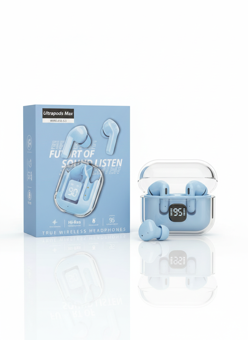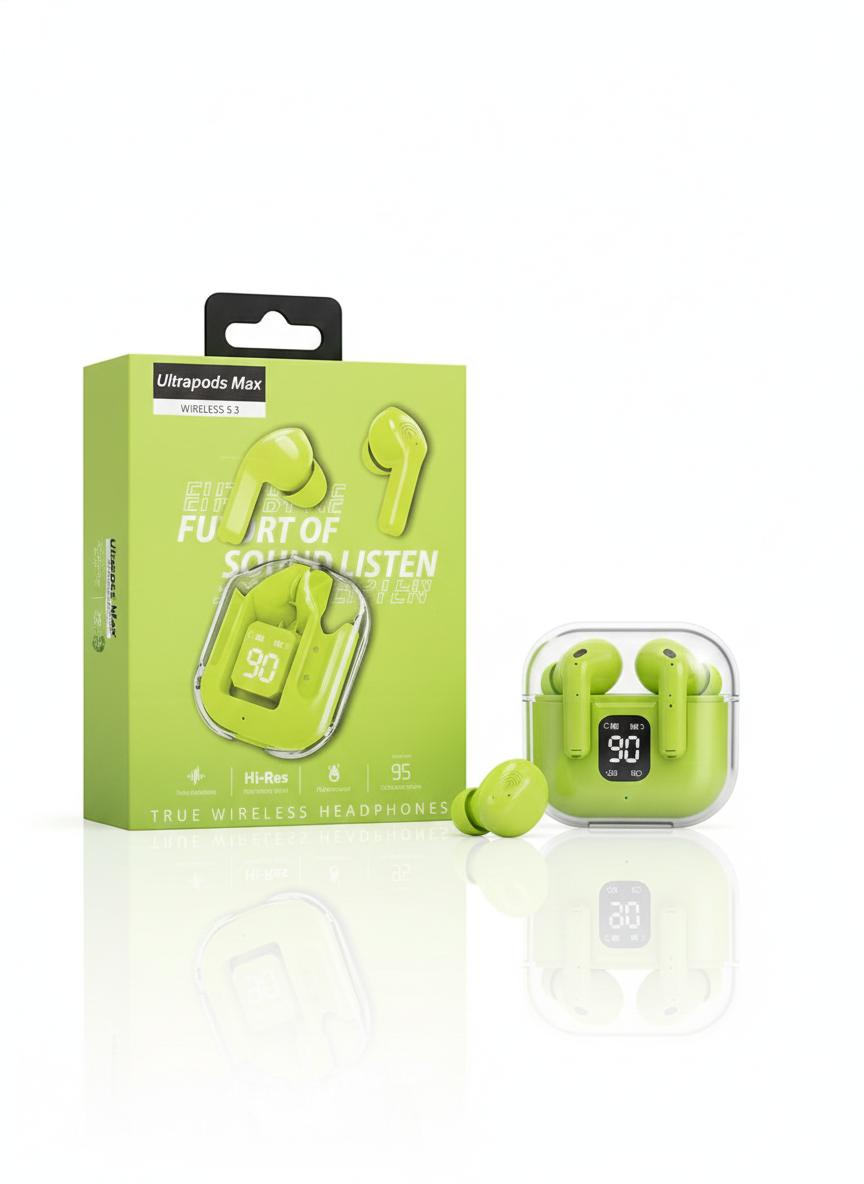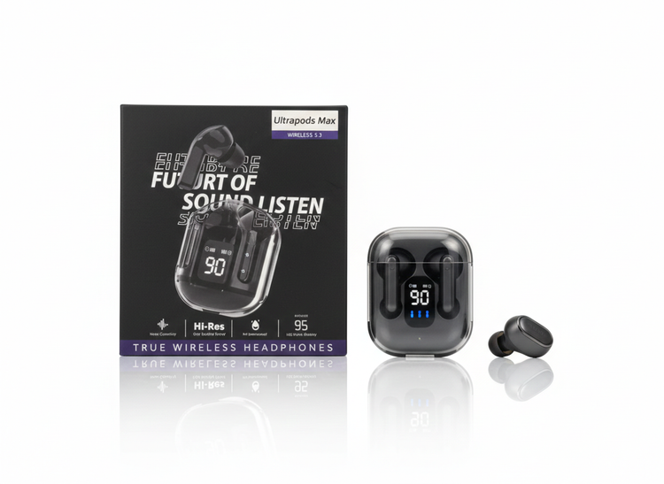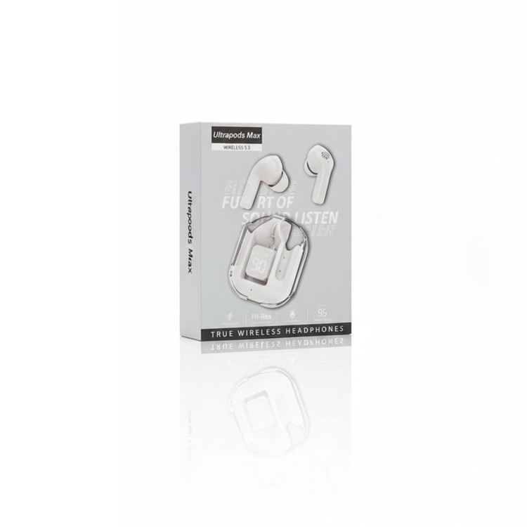 هندزفری بلوتوثی Ultrapods Max مدل شفاف با نمایشگر دیجیتال (Wireless 5.3)
