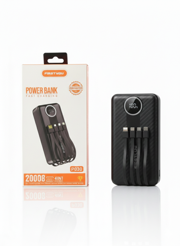 پاوربانک FIRSTYOU مدل P030 با ظرفیت واقعی ۲۰۰۰۰ میلیآمپر ساعت، یکی از کاربردیترین لوازم جانبی برای افرادی است که همیشه با مشکل کمبود شارژ مواجه هستند. ویژگی متمایز این مدل، طراحی ۴ در ۱ آن است؛ یعنی شما را از حمل کابلهای اضافی بینیاز میکند. چهار کابل باکیفیت به صورت مخفی در بدنه دستگاه تعبیه شدهاند که تمامی درگاههای رایج بازار را پوشش میدهند. بدنه این پاوربانک از متریال مقاومی ساخته شده و نمایشگر دایرهای شکل روی آن، علاوه بر بخشیدن جلوهای مدرن، میزان دقیق انرژی باقیمانده را به شما گزارش میدهد. این محصول با سیستمهای حفاظتی داخلی، از دستگاههای شما در برابر افزایش ولتاژ و حرارت حین شارژ کاملاً محافظت میکند.