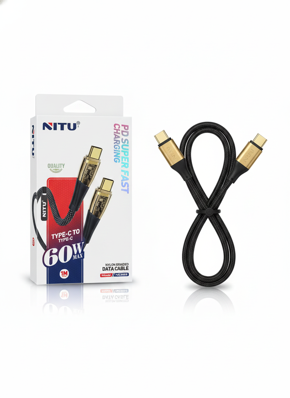 کابل NITU NC322 با طراحی مقاوم و روکش نایلونی، عملکرد شارژ سریع 60 وات و انتقال دیتا پایدار ارائه میدهد. طول 1 متر آن استفاده روزمره را راحت کرده و کیفیت بالا تجربهای مطمئن برای کاربران فراهم میکند.