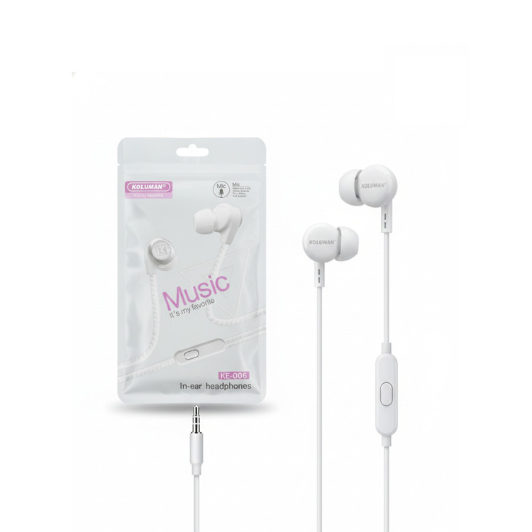 KOLUMAN KE-006 با کیفیت ساخت خوب و صدای شفاف، انتخابی مناسب برای استفاده روزمره و گوش دادن به موسیقی با جزئیات دقیق است. طراحی سبک و کابل منعطف، راحتی استفاده طولانی مدت را تضمین میکند.