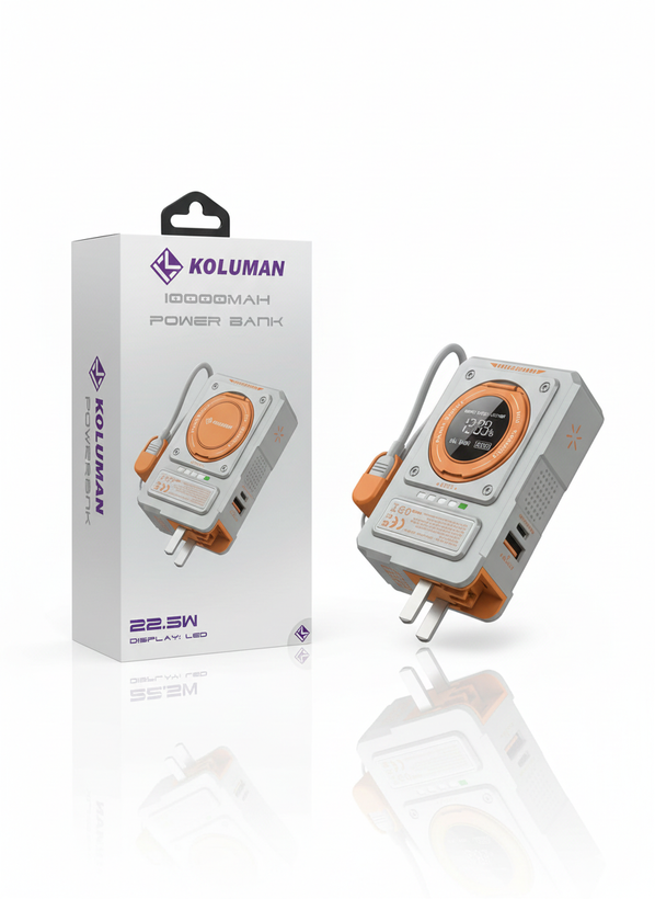 KOLUMAN K-P4 با پشتیبانی از شارژ سریع 22.5 وات، عملکردی سریع و قابل اعتماد ارائه میدهد. نمایشگر LED یکی از مزیتهای اصلی این مدل است که مدیریت شارژ را بسیار آسان میکند و آن را به انتخابی مناسب برای استفاده روزمره و سفر تبدیل میکند.