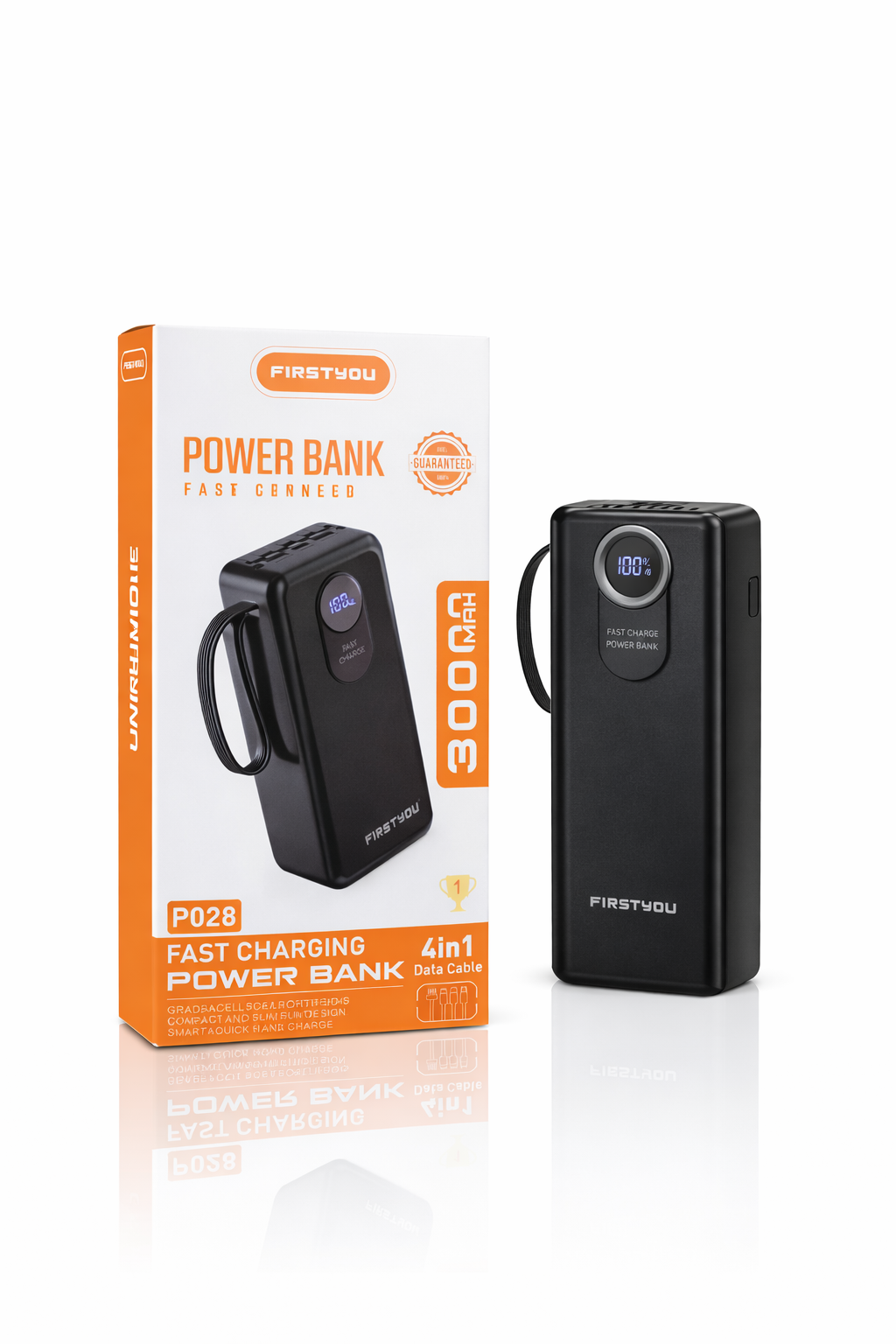 ناموجودپاوربانک ۳۰۰۰۰ میلی آمپر ساعت FIRSTYOU مدل P028 دارای کابلهای ۴ در ۱ سر خود